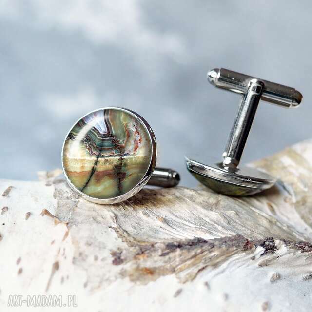 • Eleganckie, ORYGINALNE spinki do mankietów z grafiką artystyczną, zatopioną pod wypukłym szkiełkiem, dzięki któremu grafika nabiera trójwymiarowego wyrazu, w oprawie w kolorze srebrnym.